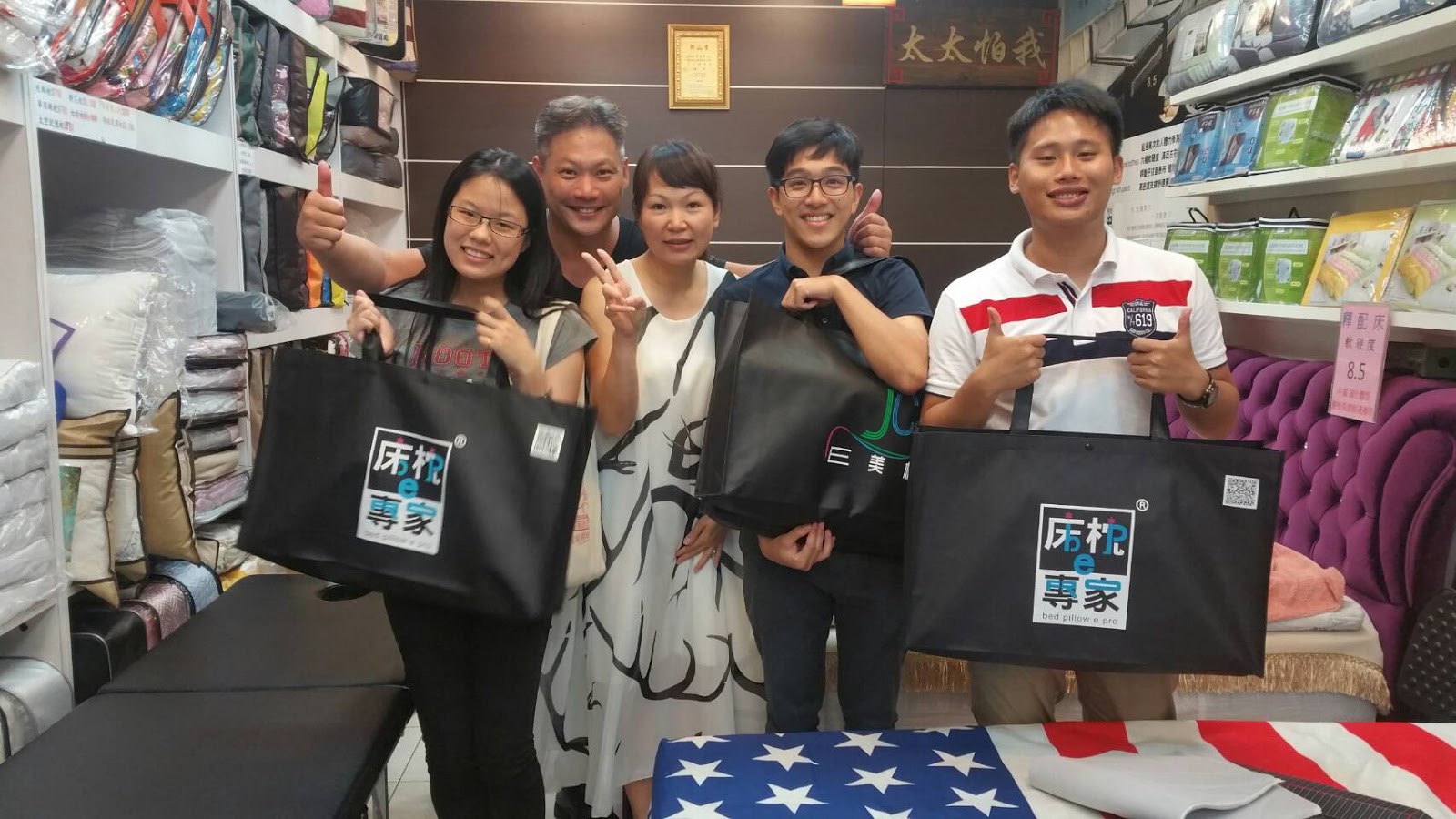 夫妻倆帶大一的女兒來買宿舍用薄墊,再試試jcE美枕,開心的測試後,除了買薄墊,再為姐妹兩人添購了各一顆jcE美枕